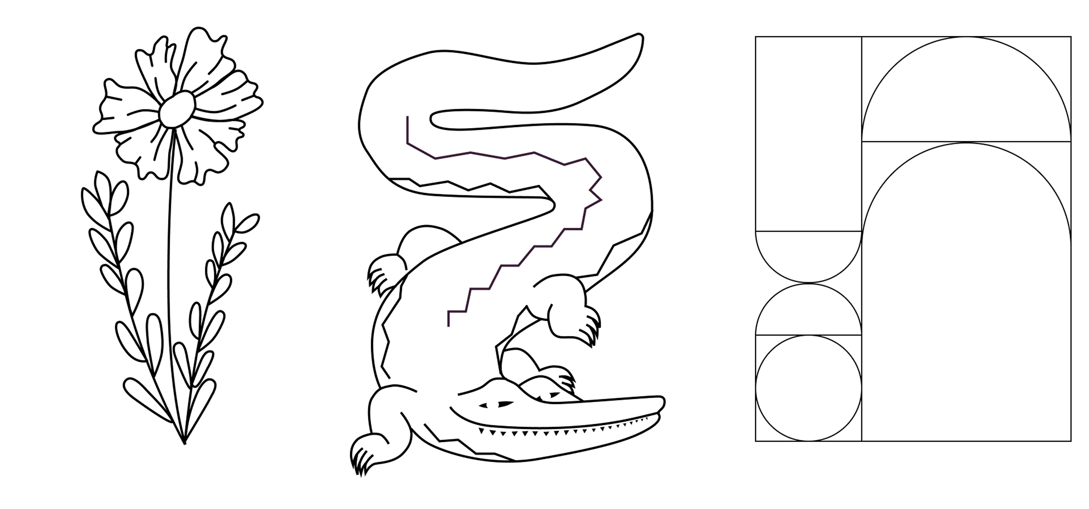 Im Anschluss an das Interface-Prototyping entwarf das Team drei eigene Zeichenvorlagen, die später in der Anwendung verwendet wurden. Diese Vorlagen dienten als erste Inhalte für das Testen des Projektions- und Zeichenprozesses in der Mixed-Reality-Umgebung. Die Motive wurden bewusst einfach und klar strukturiert gewählt – ideal, um den Einstieg für Nutzer:innen ohne Vorkenntnisse zu erleichtern. Ziel war es, unterschiedliche Schwierigkeitsstufen und Formen zu erproben und zu verstehen, wie Linien, Raster und Transparenzen in der realen Umgebung wirken. Die erstellten Vorlagen bildeten die Grundlage für die ersten praktischen Tests in Unity, bei denen überprüft wurde, wie präzise und natürlich die Projektionen auf reale Flächen übertragen werden konnten.